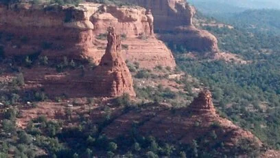 Bell rock is the most iconic shape starting in the East of Village of Oak Creek that stands next to Castle Rock, Jacks Canyon, Twin Peaks, Baby Bell, and a variety of trails and rock formations. Symbol of the “Bell of Change” and basis for the “Crystalline City” found within it. Trails take you all round the base of the bell and radiate in various directions that are used for biking, hiking, walking animals, horseback riding, running, photography, and more. They also make an infinity symbol around Bell Rock and Courthouse Butte. Trees are twisted and straight, flowers on cactus, small shrubs, and lizards are scattered everywhere. Iconic pure Upflow Masculine Vortex. Great place to connect, release, and meditate.